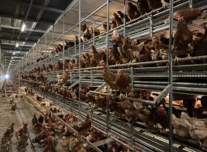 Système Cage Free, aménagé sur deux ou trois niveaux avec plusieurs étages avec passerelle.